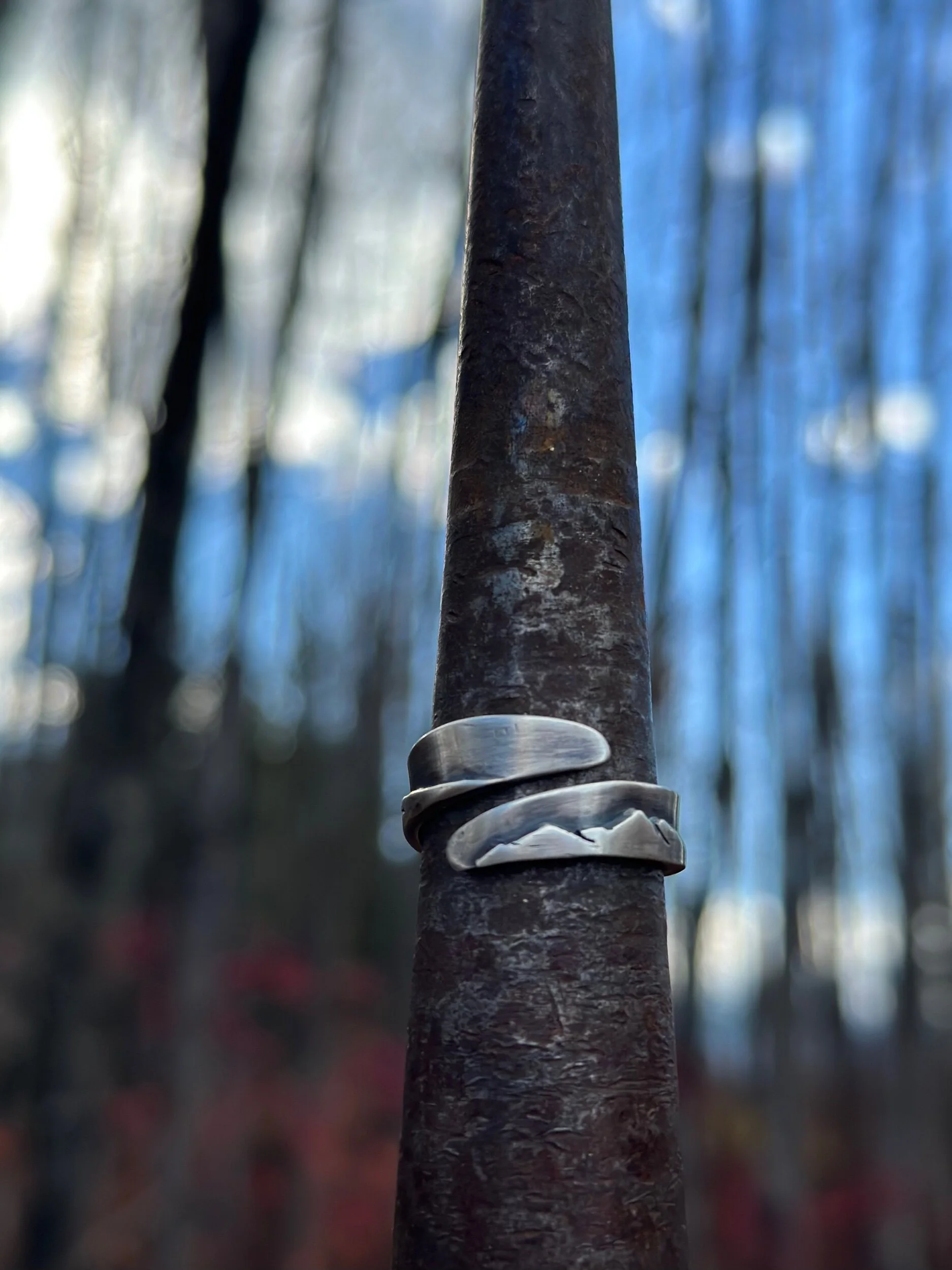 Featuring a hand cut overlay of the Selkirk Mountains & copper moon.