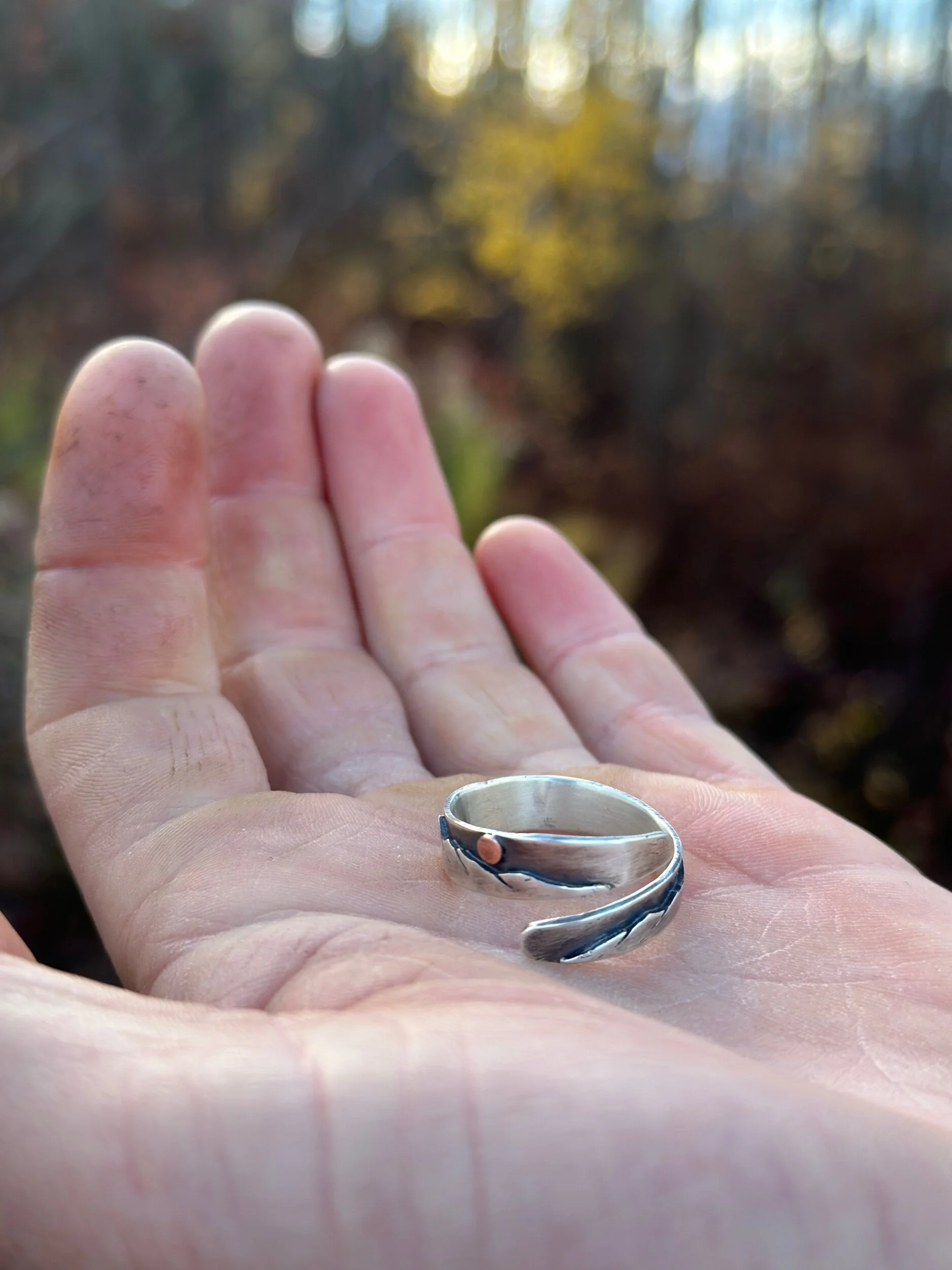 Featuring a hand cut overlay of the Coast Mountains & copper moon.